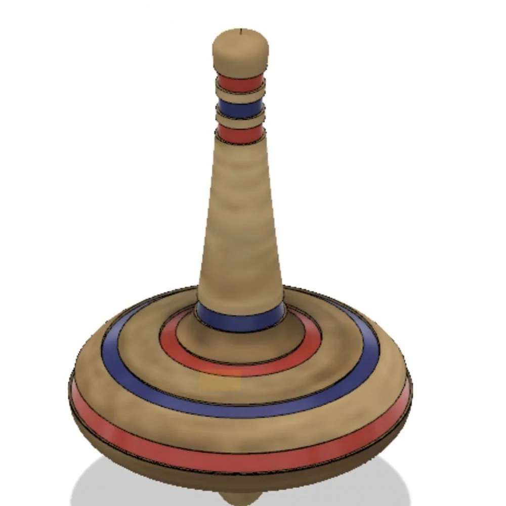 Fun toy top designed into three pieces to print without supports. Well balanced; if you give it a good spin it'll last >1 minute. I have since designed a multi-color version of this design.